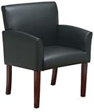Black Vinyl Modular Guest Chair with Cherry Finish LegsThe Intelligent Choice for Any Home or OfficeWork Smart provides an intelligent choice for office seating, multi-purpose folding tables and more. From plush gathered leather executive chairs, to sleek ergonomic selections in tightly fitted easy care fabrics, the Work Smart collection provides quality and value second to none. What’ s more, the Work Smart collection provides one of the industry’ s widest selections of styles and finishes to complement any office setting. Wood Reception Seating - Vinyl Modular Chair with Cherry Finish LegsFeatures:• Thick Padded Seat and Back• Black Vinyl• Cherry Finish LegsSpecs:Seat Size: 19W x 17D x 4.25TBack Size: 23.5W x 17H x 3.5TMax. Overall Size: 34H x 26W x 22.5DArms Max Inside: 20Arms to Floor Min: 23.75Arms to Seat Min: 8.25Seat Height: 19.25Cube: 6.0Carton Dimensions: 26.5 x 22.75 x 16Weight: 35 lbs. Product photo may not exactly match the product offered for sale. Please refer to the product description..../ Black Vinyl Modular Guest Chair with Cherry Finish Legs / Office Star Furniture